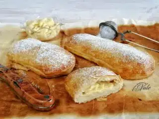 Questi dolci a Procida sono molto più richiesi dei cornetti o delle brioche, se di mattina vi recate in un bar per colazione troverete una vetrina colma di questi dolci.In fin dei conti le Lingue di Procida non sono altro che due basi di pasta sfoglia che racchiudono un cuore cremoso di crema pasticcera alla vaniglia. Capirete che farle in casa è davvero semplicissimo anche se una volta mangiate lì, con il mare che ti circonda, devo dire che sembrano diverse, ma ora è la mia malinconia che parla. Per altri dolci con la pasta sfoglia (clicca qui).